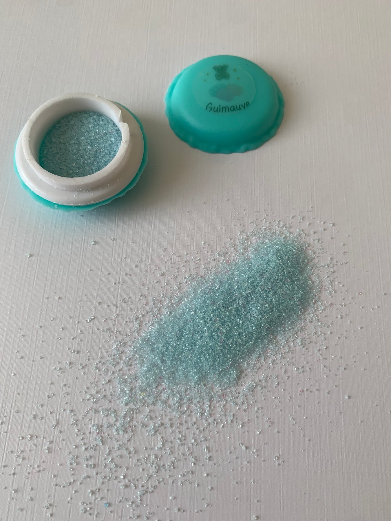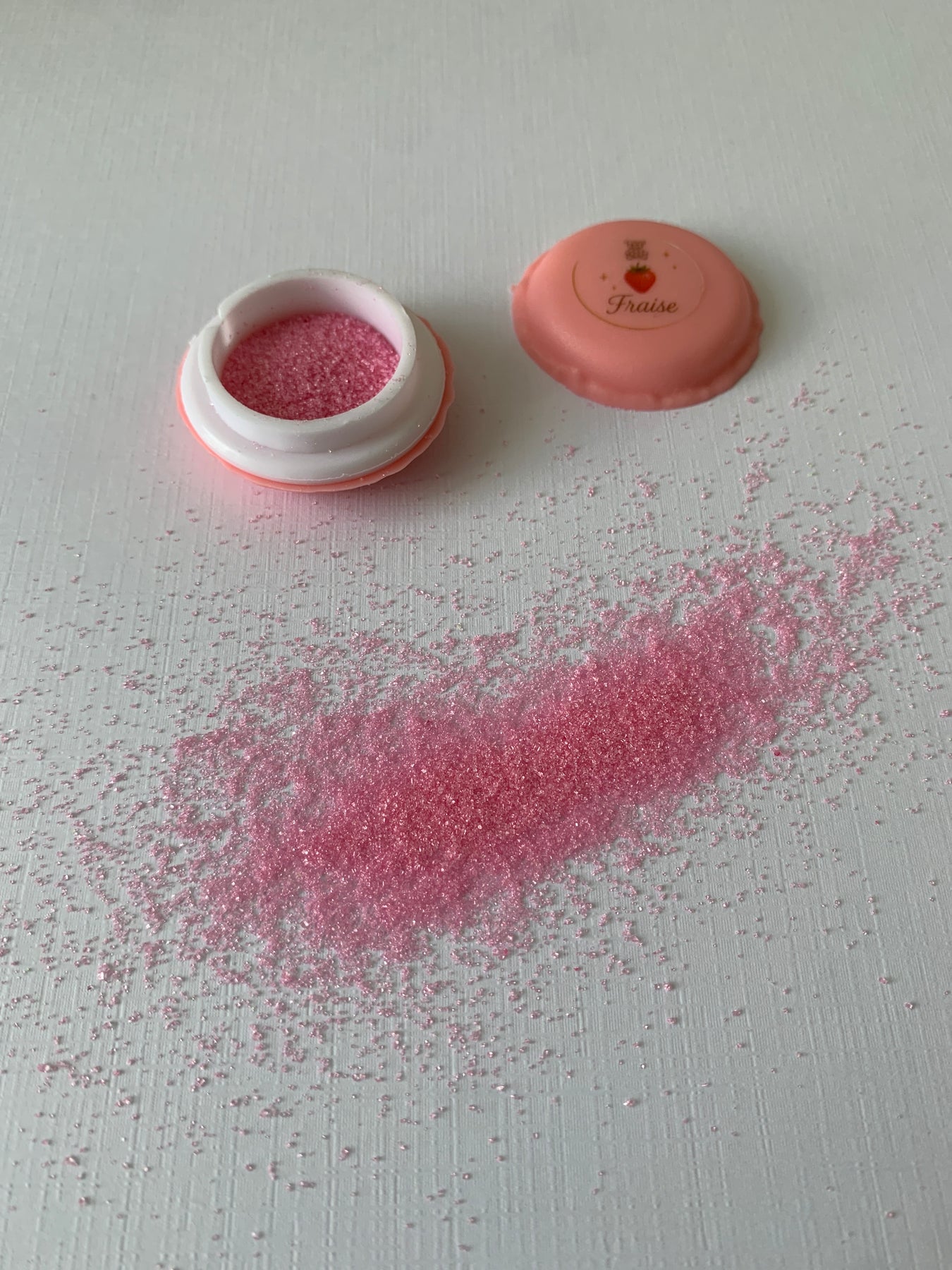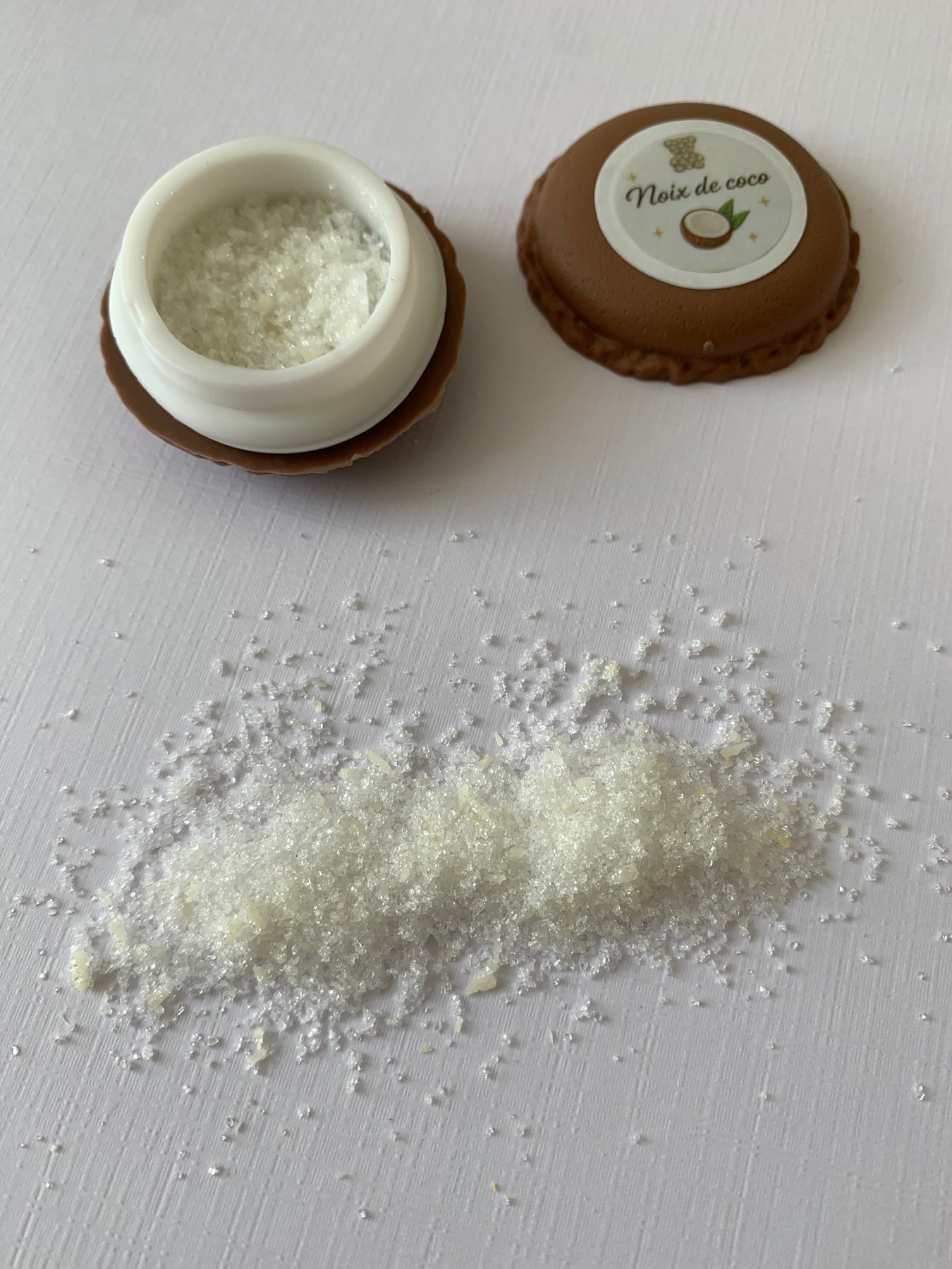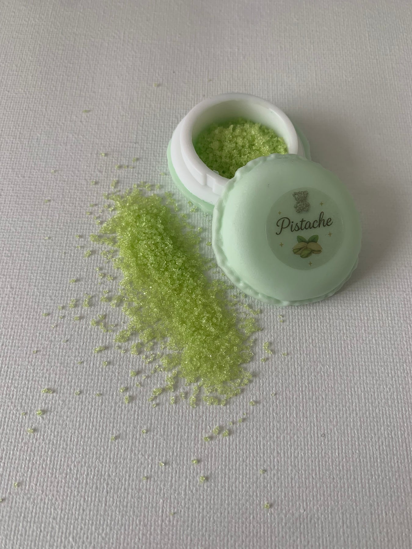 Chaque macaron contient une poudre à saupoudrer, présentée dans un joli contenant réutilisable.